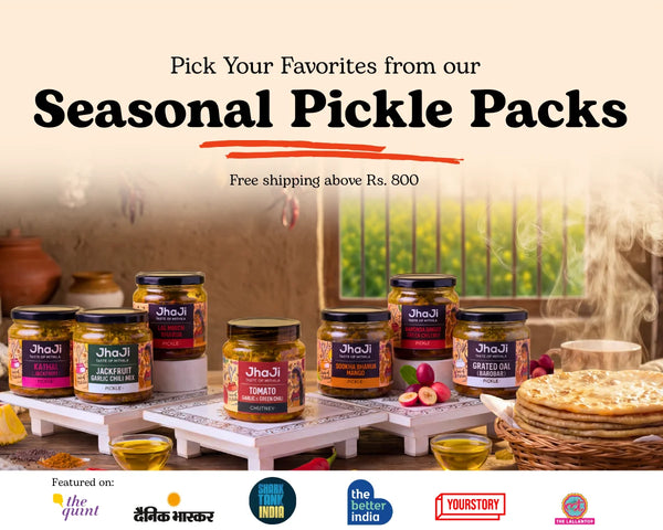 Get this pack of 3 different pickles, Lal Mirch Bharua Pickle, Jackfruit Pickle, and Sookha...
